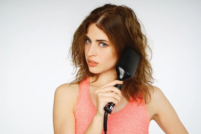 Allumez la brosse et coiffez lentement les mèches de cheveux. Continuez en faisant glisser la brosse des racines jusqu’aux pointes.