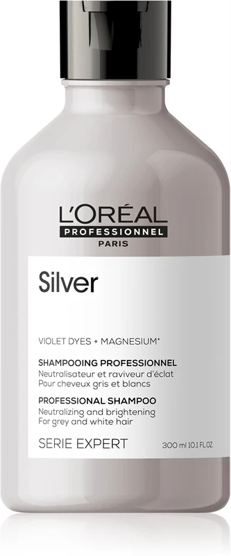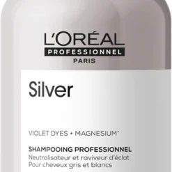 Toutes celles qui ont des cheveux blonds, gris ou blancs savent très bien qu’un soin de qualité est essentiel pour conserver la beauté de leur teinte. Le shampoing argenté neutralisateur de tons jaunes L’Oréal Professionnel Série Expert Silver renouvelle la teinte naturelle des cheveux gris ou décolorés.