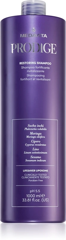 Le shampooing Medavita Prodige Restoring Shampoo nettoie efficacement le cuir chevelu, il lave parfaitement les cheveux et leur redonne leur beauté naturelle.
