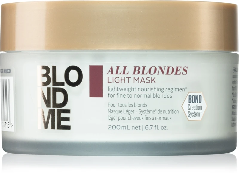 Le masque Schwarzkopf Professional BLONDME All Blondes Light avec technologie 3D Bond Creation et complexe protéiné de soie contribue à la formation de nouvelles liaisons tout en laissant les cheveux blonds fins à normaux forts, souples et brillants de santé. Le masque BLONDME All Blondes Light convient parfaitement aux cheveux blonds fins à normaux ayant besoin d’un soin qui les rendra doux et brillants.